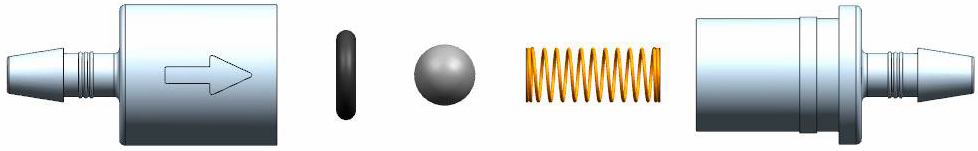 特徴:超小型、軽量タイプ。SUSボールとスプリングを利用した簡易的な逆止弁です。